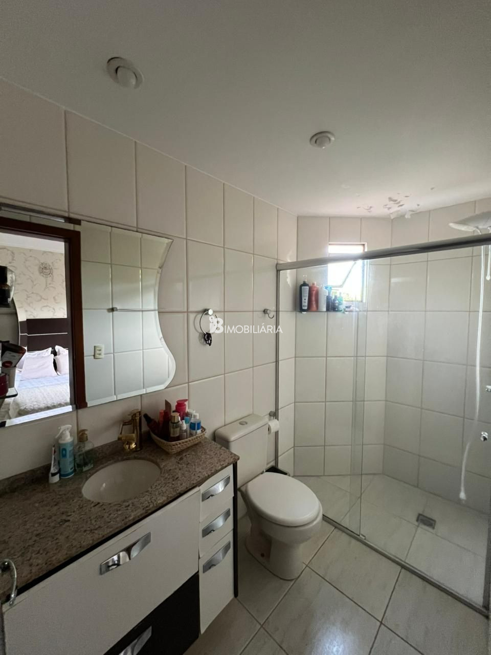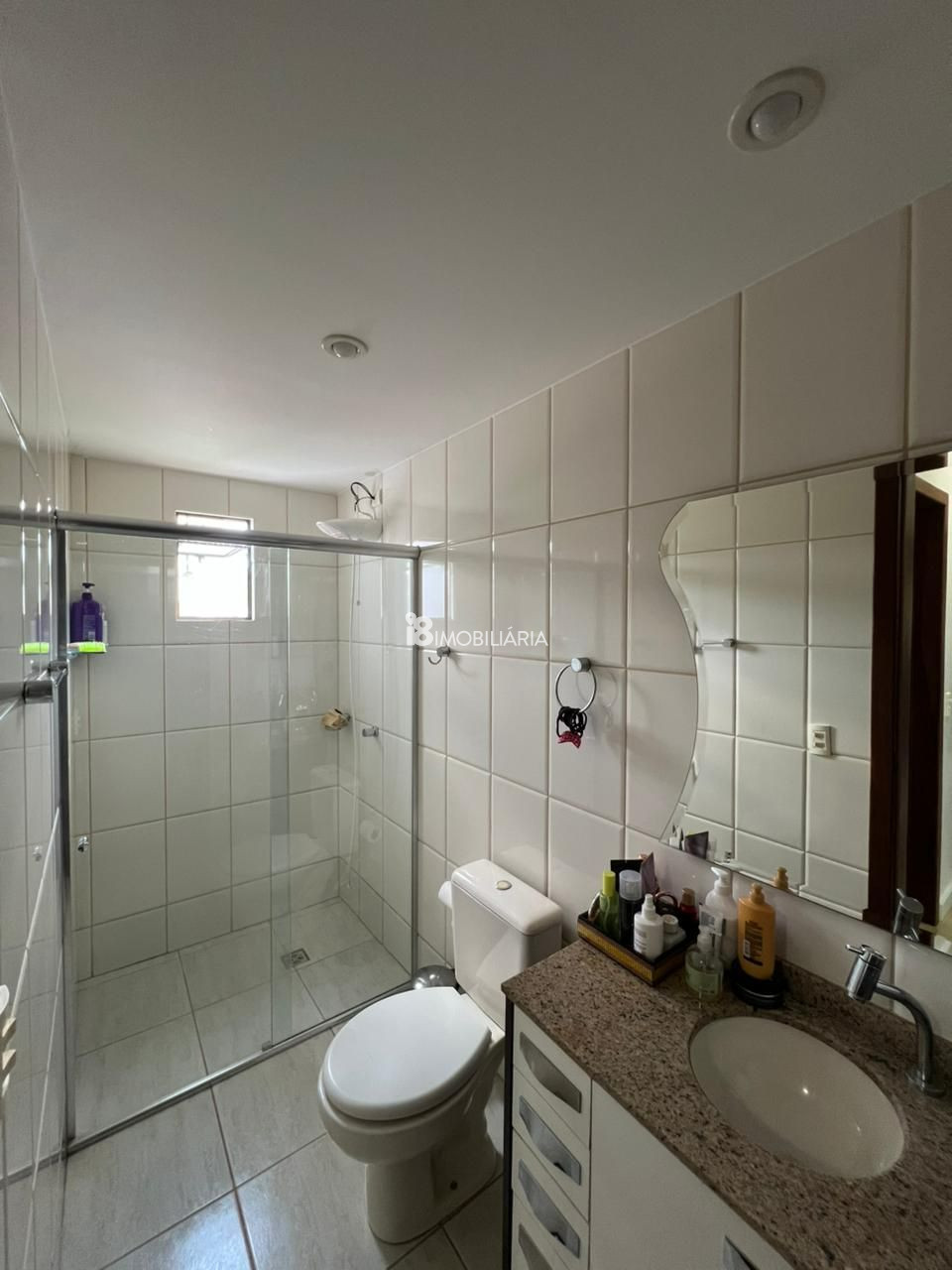 Banheiro social com armário e box instalados