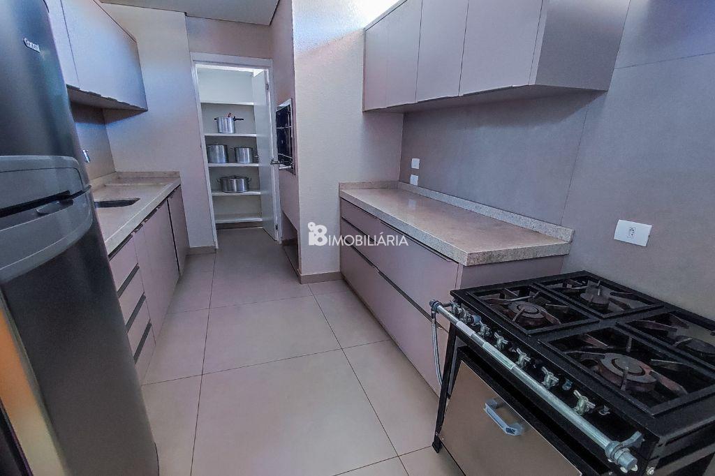 -Sala de jantar integrada à cozinha gourmet com churrasqueira privativa